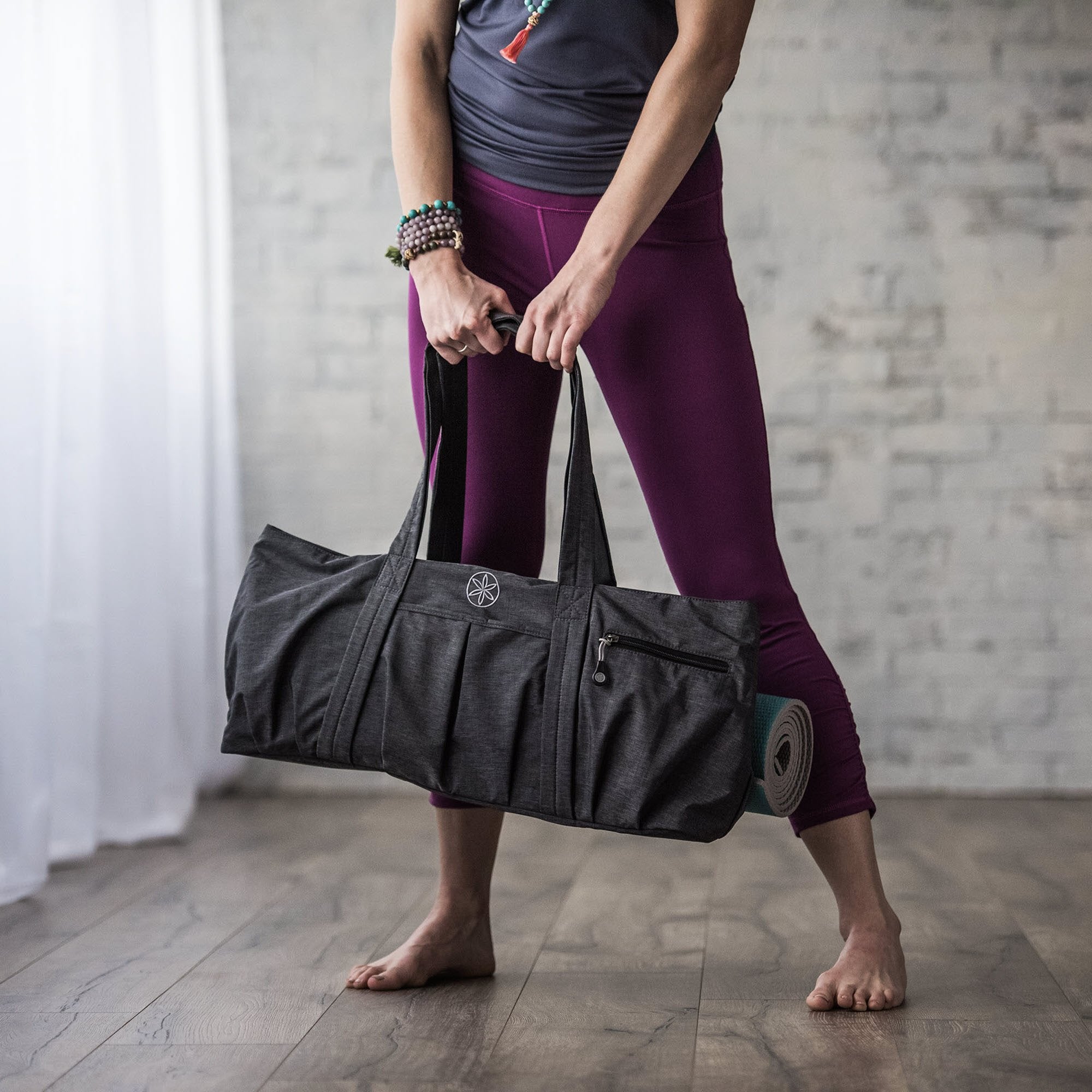 Fit all your gear, plus your mat, with this All Day Yoga Tote. This large bag features a main compartment, a side pocket designed to securely hold your mat, and inner and outer small zip pockets to keep your essentials safe. This bag also features a comfortable, reinforced, carry strap and an interior easy-to-clean fashion print liner.