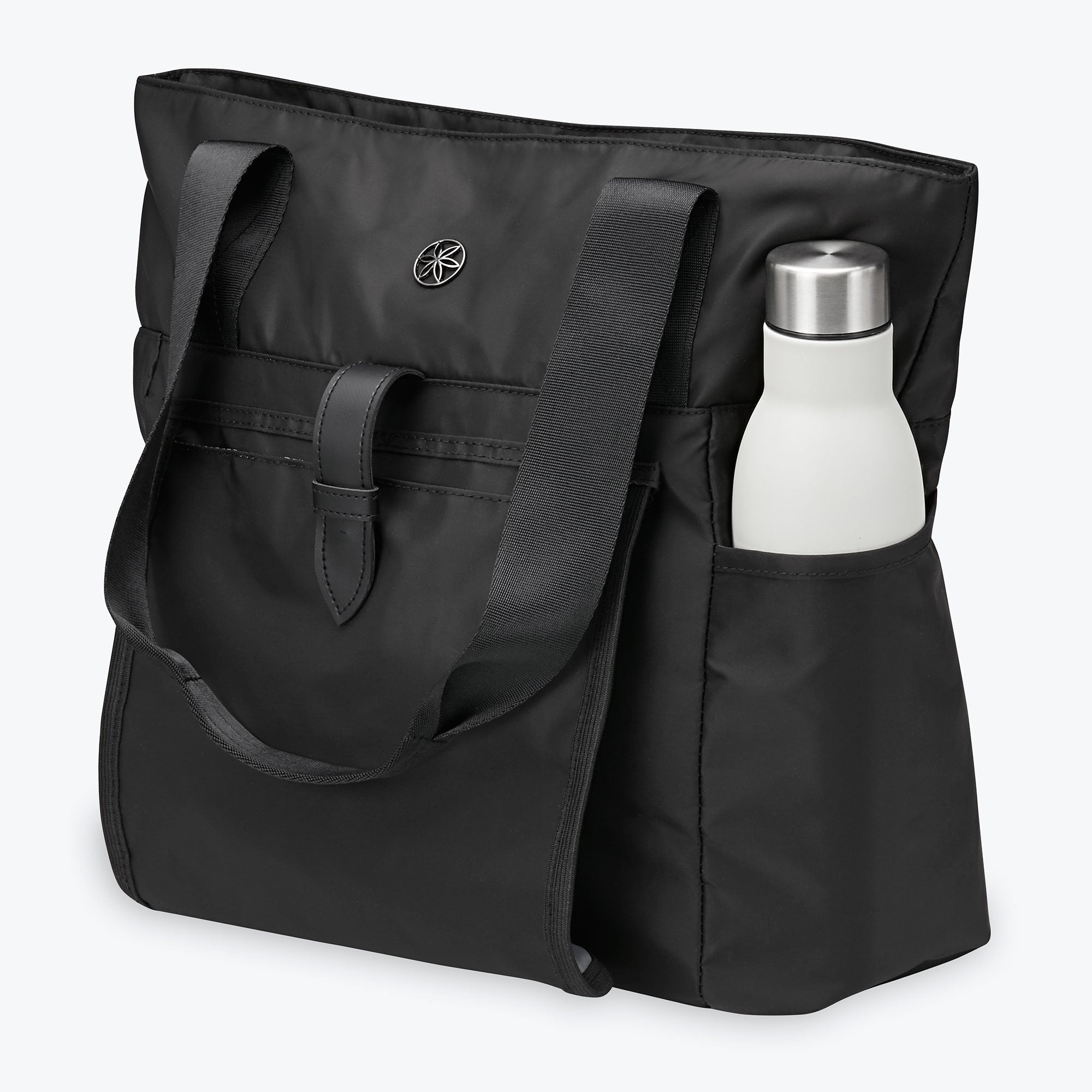 It’s a new definition for versatility—a lightweight bag that can cruise between home, work, gym and weekend getaway. The roomy interior, with its clever pockets, can stow all your gear. And when you’re ready to hit the studio, slide your phone and water bottle into the two outer pockets, secure your mat with the otherwise inconspicuous sleeve and go.